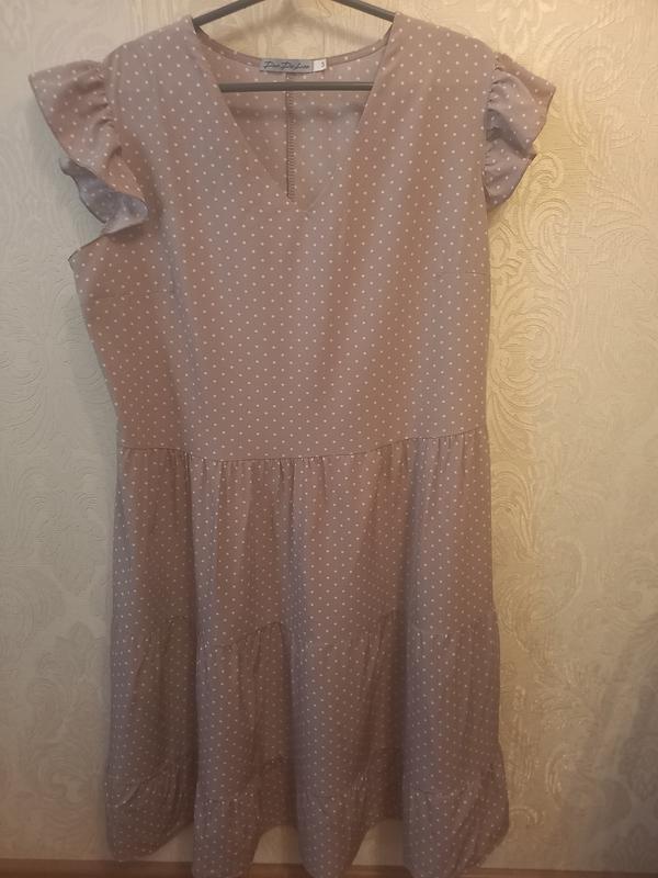 Лёгкое летнее платье в горошек с воланами из невисомой, приятной к телу ткани софт. Модель свободного края с высокой какеткой, длина до колена. Платье подойдёт также беременным .об.г 118, длина 94.