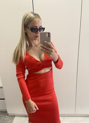 Красное платье миди