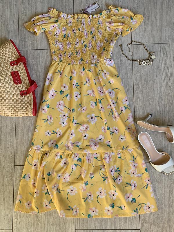 Лёгкое летнее платье в цветочек. Плечики спускаются, на груди жатка, хорошо тянется. Новое с биркой Размер 10/S/36 Длинна 98 см