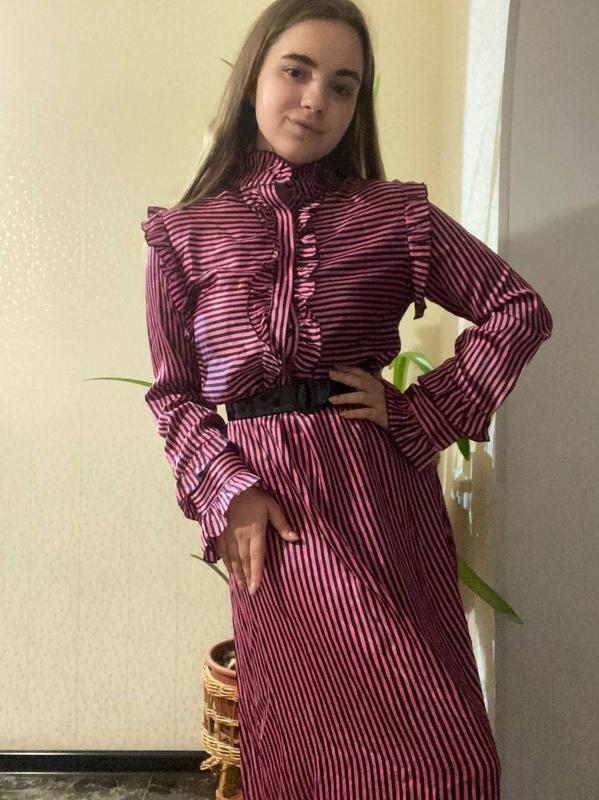 Легкое женское платье с длинным рукавом от нидерландского бренда Rough studios. Выполнено из легкого натурального индийского шелка. Сдержанный романтичный стиль. Воротничок стойка с рюшей и невидимой планкой для пуговиц. Отрезная линия талии, на рукавах также есть рюши. Длина миди. Подойдет для офиса, а также для различных торжественных событий. В наличии два размера: S и M - украинские размеры 44 и 46. Идеально будет на высокий рост - рукав имеет достаточную длину. Также есть туники в стиле oversize из такой же ткани. Размеры М и XL. Звертайтесь! 👈👈👈