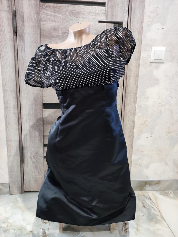 Платье черное ШЕЛК верх платья тонкий шифон в горошек TANARI ARTHUR LEVINE Сзади застёгивается на молнию потайную,есть шлица ПОГ 36 ПОГ 36 Поб 48 Длина 88 Рукав 12 Верх платья 100%ацетат ВЕРХ100%ШЕЛК ПОДКЛАДКА 100%полиэстер5%спандекс Состояние хорошее 150грн