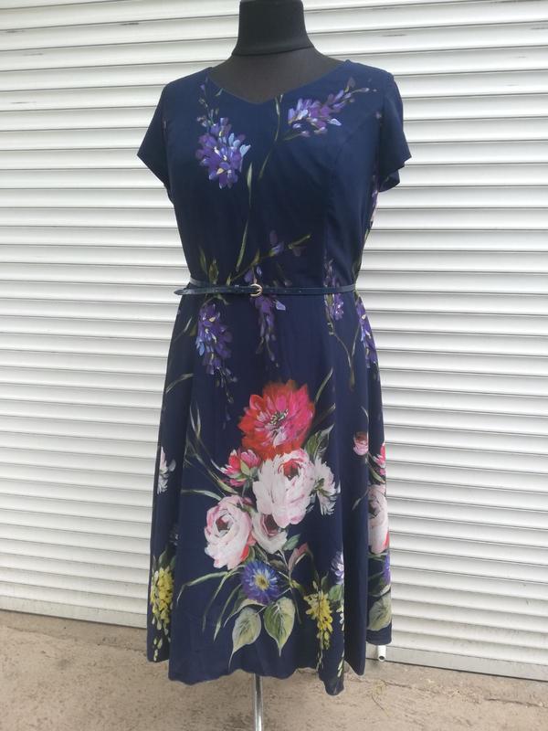 Платье J&S Collection, Польша. Приталенный силуэт, на змейке. Есть рукавчик. Расклешенное книзу. Цельнокроеное. На подкладке. Пояски по размерам в комплекте. Состав ткани: Szyfon 97%, Spandeks 3%. Длина 120 см. Размеры: 44 (50). -- 44: ПОГ52, ПОТ49, ОТ82, ОБ106.