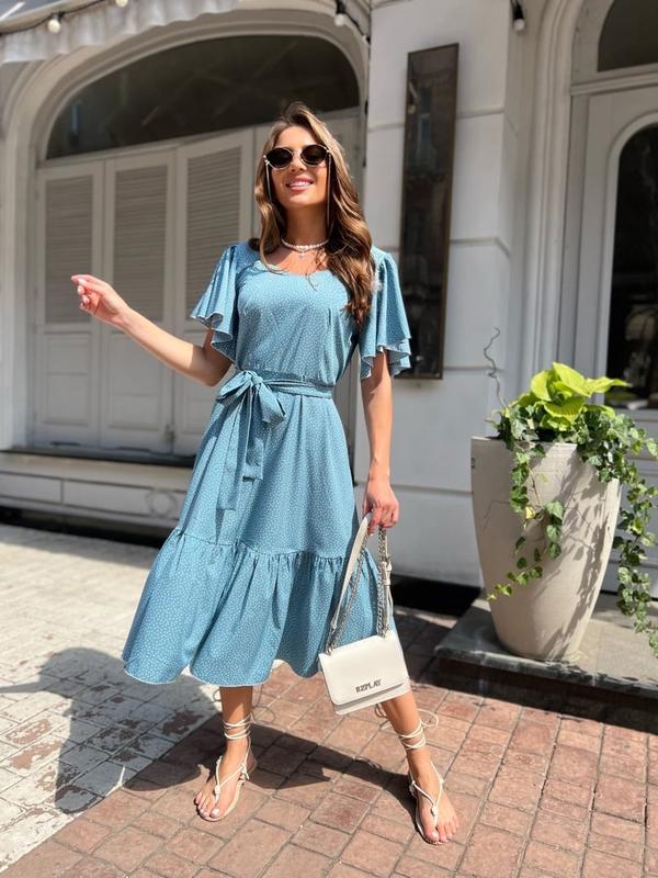 Платье арт. ok. 313 Ткань: турецкий Super Soft (принт мелкий горошек) Цвет: малиновый, красный, изумруд , мокко Размер: S-M, L-XL Тканевый пояс в комплекте. Карманы по бокам. Длина от плеча 111/113 см. Цена : 750 грн