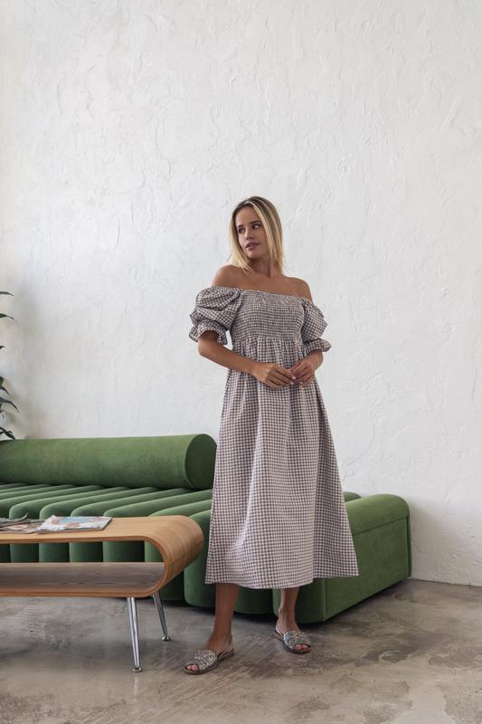 Літня в клітинку міді сукня плаття летнее миди платье в клетку клеточку