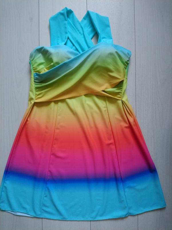 Плаття, як купальник В дуже хорошому стані Еластичне Матеріал 85% поліестр і 15% еластан Розмір L Довжина 83 см Під руками 44 см і тягнеться до 58 см Півобсяг пояса 44 см і тягнеться Півобсяг бедер 58 см і тягнеться З дефектів невеликі катишки