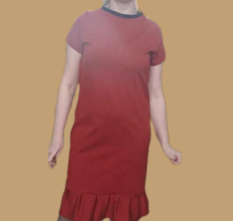 щільна тканина, як дуже плотна футболка тримає форму, як неопрен ,в складі є стрейч, при розтягуванні на тілі, не міняє свою щільність, горловина із трикотажу як у футболці виміри без розтягнення : ширина плечей 33+рукава напівобхват грудей 48 напівобхват талія 48 напівобхват стегна 54 напівобхват низу 60 довжина від плеча 102 довжина рукава 16 ширина низу рукава 17 одягнене на L напівобхват грудей 53 зріст 168