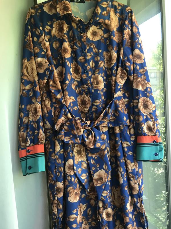 Летнее платье , длина 130 см . На широком ремне который пришит к платью , по бокам разрезы . На объёмы 95-70-104 см