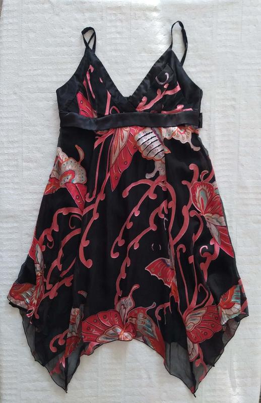 Сарафан, пог 42, пот 40, поб 52, довжина 95 без бретелек. Бретельки регулюются. Є підкладка. на спині змійка.