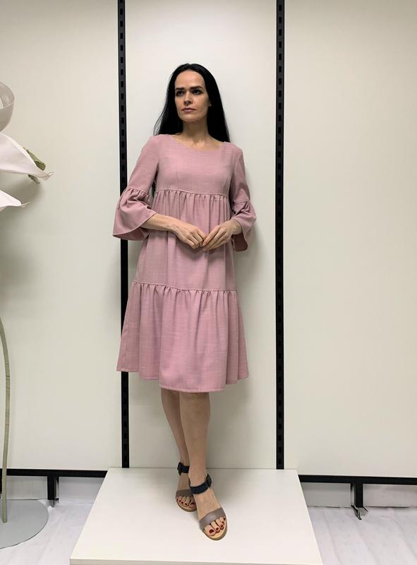 Літня легка сукня А-силуету з тканини з вмістом льону створено для любителів комфорту в літні будні. Акцент цієї сукні спрямований на зручність і універсальність в будь-яких обставинах - кишені з боків, довжина, крій, рукава, натуральна тканина.