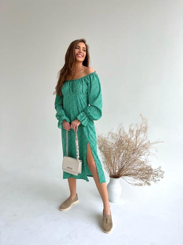 Артикул: 668-225 Цвет: чёрный, белый, зелёный принт мелкие цветочки Манжетики и плечи на резинке, сбоку есть змейка Размеры: 42-44, 46-48 Материал: софт Фото Реал