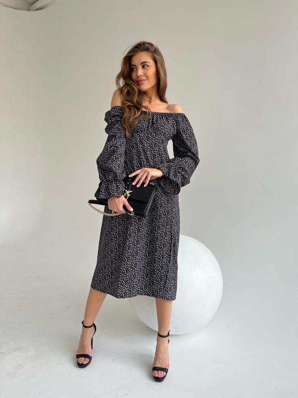 Артикул: 668-225 Цвет: чёрный, белый, зелёный принт мелкие цветочки Манжетики и плечи на резинке, сбоку есть змейка Размеры: 42-44, 46-48 Материал: софт Фото Реал