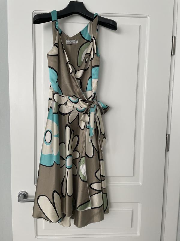 летнее женское платье на зАпах размер 36 (S). Ткань с переливом, приятная.