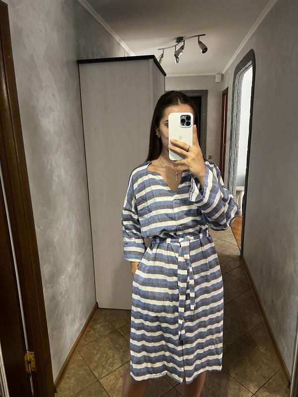 Ляна сукня в полоску Стан нового, одягнуте 2 рази Розмір універсальний