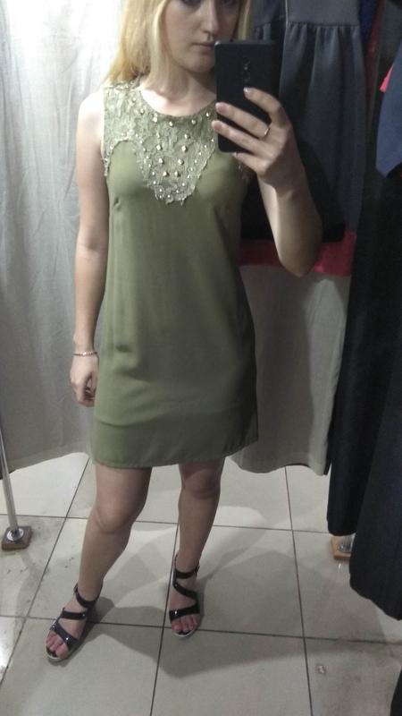 Миленькое летнее платье, очень удобное, не мнется при носке. С подкладкой. Сзади на молнии. Размер S-M. Длина 85 см, ПОГ 45 см, ПОТ 41 см, ПОБ 46 см. 100% polyester.
