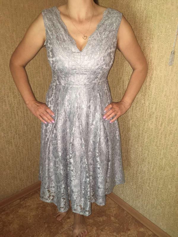 Плаття кружевне на підкладці, р 48, гарний стан та якість, ззаду застібка, гарно лягає по фігурі, можна на свято. Довжина 108, по талії 40, груди 51.