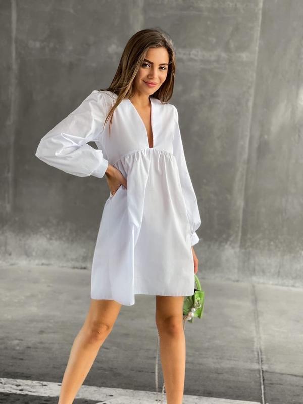 реальні фото Стильне плаття бебідол з вирізом. Збоку на змійці. Тканина: котон Туреччина 🇹🇷 Розміри: 42-44/ 46-48 Довжина виробу 87 см, довжина рукава 59 см, об'єм по шву під грудьми 78/82 см Кольори: білий, чорний, малина, трава