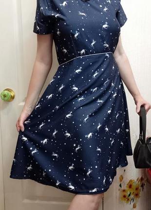 красивое платье с единорогами из тонкой ткани на подкладке с завышенной талией спереди, пышной юбкой и длинной молнией украшена красивой белой тесьмой вокруг горловины и вокруг талии 53 см( молния) размер 12 евро 40 полуобхват груди 48 см 38 см полуобхват талии полуобхват бёдер 57 см длина 96 см от бренда "Ями" удлиняет силуэт