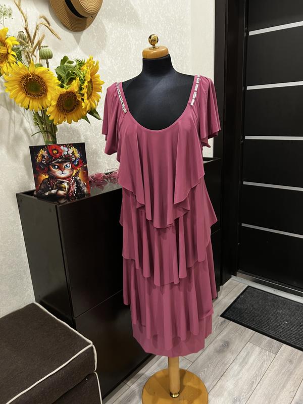 Нова сукня, з биркою. Склад: Поліестер - 95%, Еластан - 5%. Розмір - 54. 170-108-116. Заміри: Довжина: 100 см Обхват грудей: 108 см Обхват стегон: 116 см