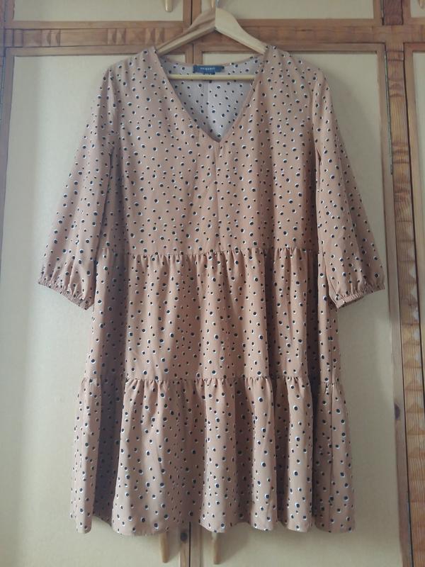 Платье приглушённо-рыжего цвета (в жизни чуть ярче, чем на фото). Скрывает недостатки фигуры, очень удобный фасон, не стесняет движений. На меньший размер будет оверсайз, тоже красиво сядет. Рукава снизу на резиночке. Ткань тонкая, приятная к телу. Не просвещается. Не тянется. Не мнётся. Состав: 100% полиэстер ПОГ: 58 см Талия, бёдра - свободно Длина: 91 см Длина рукава: 46 см
