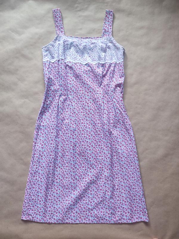 Красиве плаття пошите під замовлення. Розмір: 10 Довжина - 100 см ПОГ - 45 см ПОТ - 41 см ПОБ - 53 см Склад: 100% котон, мереживо - акрил. Стан: відмінний, б.у. Доставка: Новою поштою після повної або часткової передоплати із накладним платежем.
