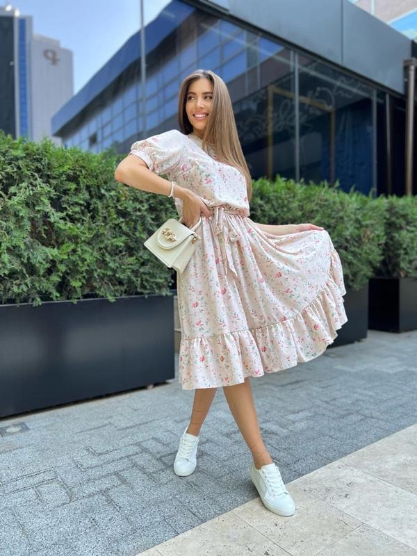 Платье арт. ok. 678 Ткань: турецкий Soft Цвет: белый, мята, бежевый Размер: S-M, L-XL Талия на резинке. По бокам карманы. Длина 108/110 см. На спинке застёжка пуговица. Тканевый пояс. Цена : 820 грн