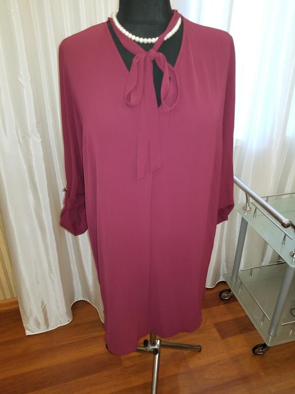 темно бордова нова сукня з асиметричним низом, гарний фасон, тканина як шовк структурний, злегка еластичний, ОГ124, ОС140, довжина 90/100, рукав 57( регулюється хлястиком.