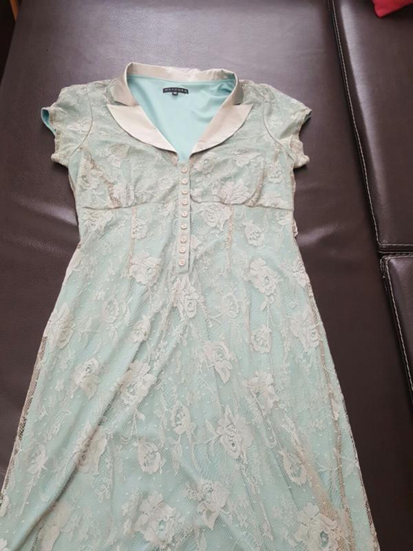 платье красивое гипюровое,цвнт мятный,размер по спинке 108 см,длина,полуобхват груди 48-50,талия 42см