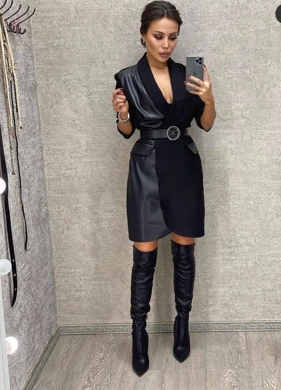 Сукня-піджак Мод RC-16 Розміри 42-44, 46-48, 50-52 Колір чорний ❤️Тканина : кріп костюмка + еко-шкіра пояс у комплекті! 💥Ціна 699 грн Неймовірно жіночна і стильна сукня, в якій ти будеш виграшно виглядати як в офісі, так і на будь-якій крутій вечірці. Модель сукні "на запах". З внутрішньої сторони зав'язочка, що дозволяє самостійно регулювати ширину талії. Пояс входить у комплект.(Р5042)