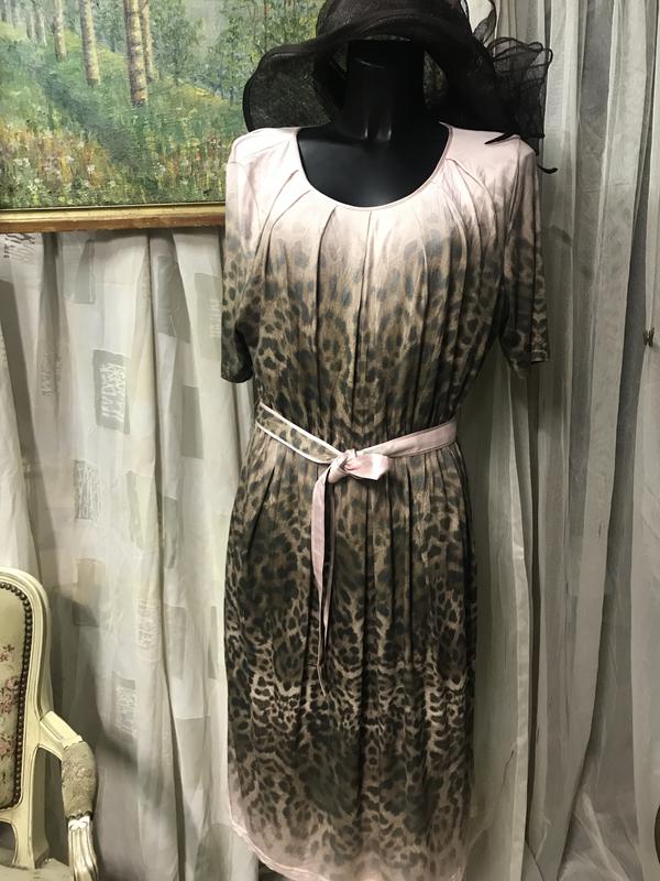 Шикарное платье от Basler. Красивая расцветка, эффектное сочетание нужно-розового с коричневым. Есть»родной « поясок . По талии-резинка. Полотно из трикотажной вискозы, очень нежное и приятное к телу. Платье на подкладе. Размер по бирке-46. Состав:вискоза/эластан(96/4). Красивое качественное платье! Замеры по запросу.