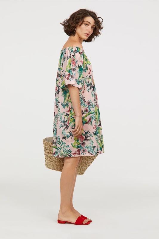 Размер S (подойдет на М)длина 90 см,пог 49 см. Платье с открытыми плечами из воздушного трикотажа из переработанного полиэстера с резинкой сверху и короткими широкими рукавами. Новое! Без нюансов!