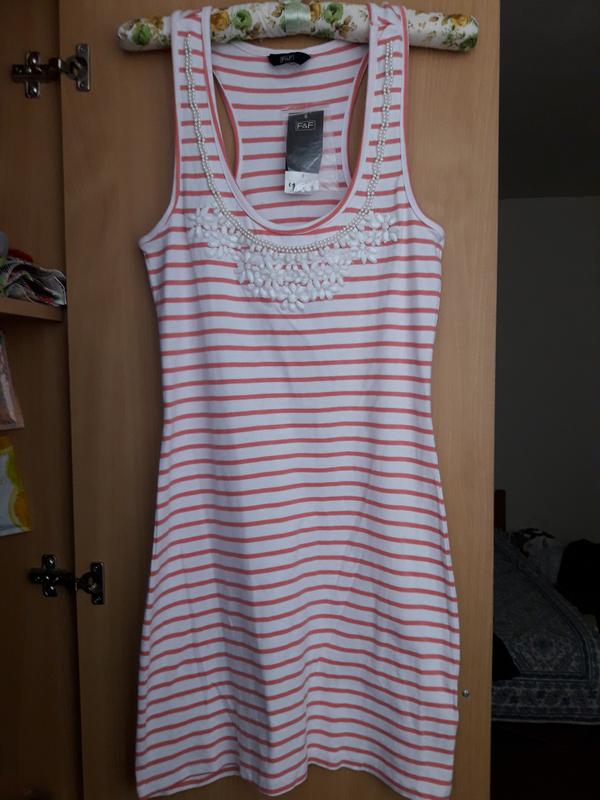 Плаття в смужку спереду з намистинками.Розмір S.