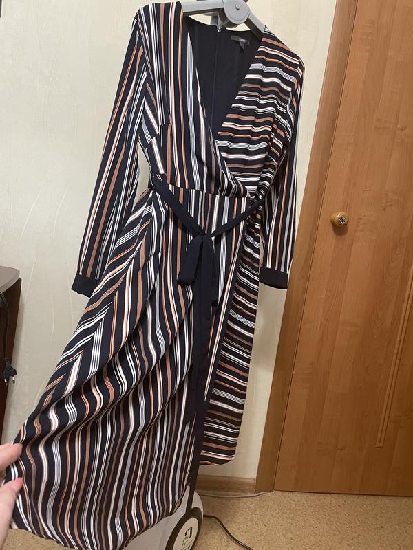 Дуже гарне та ефектне плаття на запах, запах прошит, тому юбка розлітатись не буде. Усе плаття з підкладкою, тому можна і на теплу осінь. На грудях запах дозволить одягти на пишні форми, виріз відкритий, я одягала з ажурною майкою, можу надіслати фото. Є довгий пояс. Заміри Плечі 42+ НОГ 54 НОТ 47 Довж 110 Довж сукні 72 Довж рукава 62
