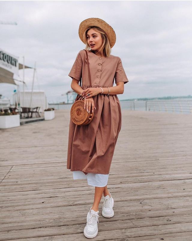 Сукня нова, українського виробника. Одягалась тільки для примірки. Брала для себе, але виявилась вузьковата у плечах. Заміри: Плечі 39 см ПО грудей 47 см У талії вільна Довжина 112 см На етикетці розмір М/L.