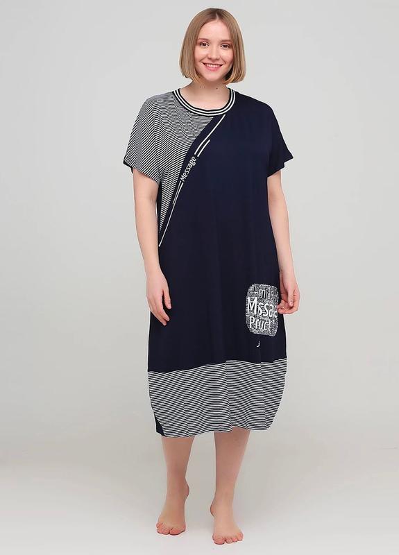 Темно-синя домашній плаття, сукня оверсайз romeo life в смужку 7395