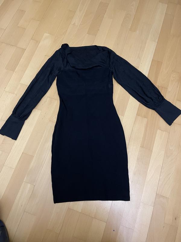 Бандажное платье Coast. Рукава и воротник шёлк 100 %, основное полотно очень плотный, утягивающий трикотаж ( вискоза, полиамид, эластан), см . Фото. ПОГ 36 см, ПОТ 33 см, ПОБ 42 см, длина 104 см.