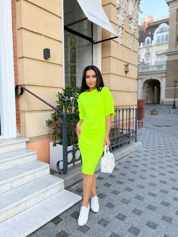 Платье арт. strog. 172 Ткань: двунить Цвета: неон салатовый, неон оранж, зеленый Размеры: 42-44; 46-48; 50-52 Отличного качества Цена : 750 грн