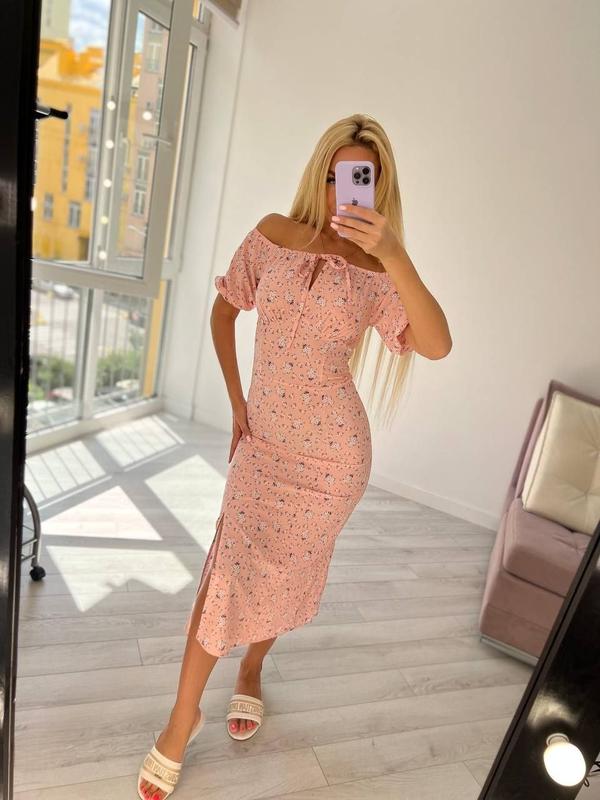 Платье цветочный принт летнее легкое миди со спущеными открытыми плечами