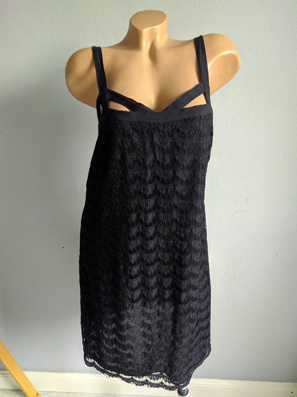 Брендовое платье от британского дизайнерского дуэта Сиенны и Саванны Миллер (сестры). Маленькое черное, легкое, из нежного кружевного полотна, полностью на хлопковой подкладке, бретели из хлопка фиксированные, размер европейский 40, ориентируйтесь по замерам: длина - 89 см, ПОГ - 44-45 см, ПОБ - 54 см. ВОЗВРАТА и ОБМЕНА ТОВАРА НЕТ!