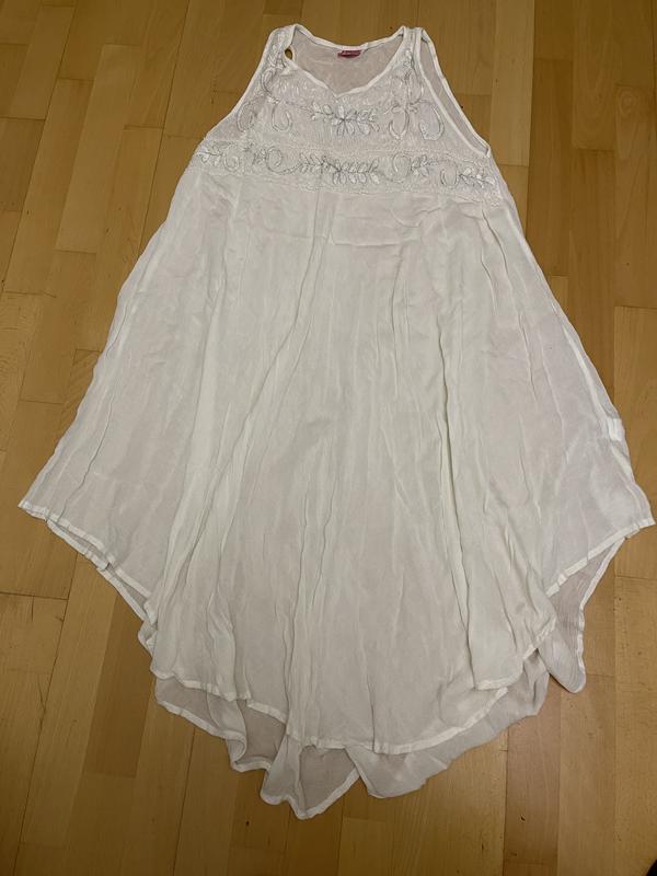 Белое платье из тонкого хлопка. ПОГ 64 см, длина по спинке 125 см, по боковому шву 64 см. Идеальное решение для отдыха на море. Новое, без дефектов.