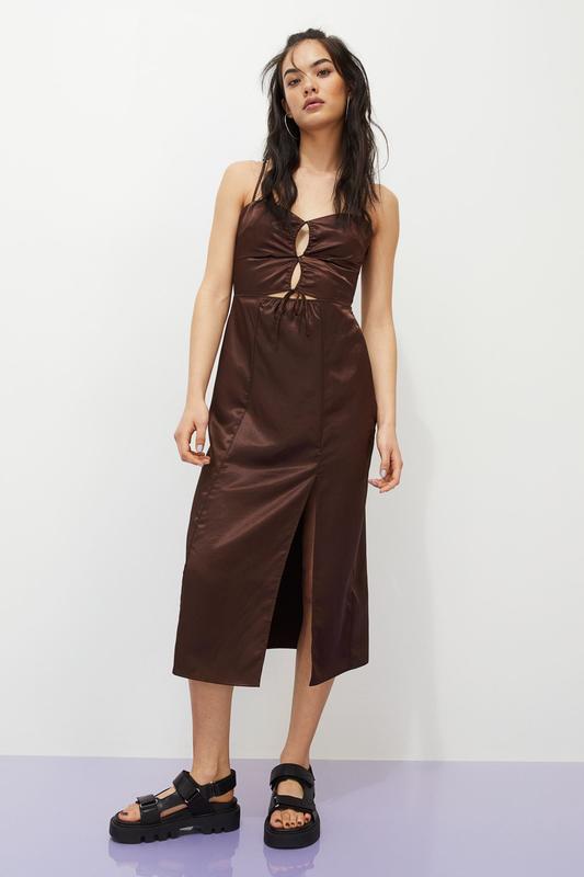 Приталена сукня довжиною до литок з атласу з вузькими регульованими бретелями
