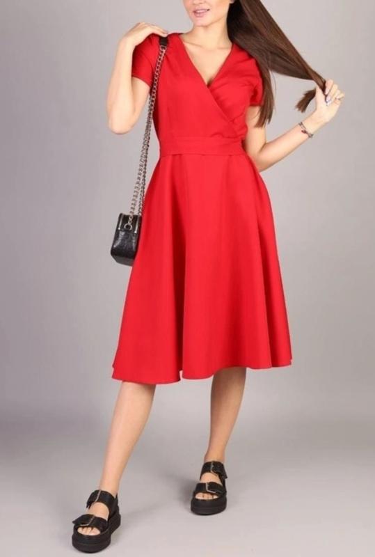 Летнее, нарядное платье красного цвета выполнено из качественного, дышащего материала, приятного на ощупь и к телу Прекрасно подойдёт как для торжественных мероприятий, так и для повседневной жизни Верх платья, на запах Низ платья, юбка расклешенная с карманами. В боковом шве потайная молния обеспечивает прилегание, что выгодно подчеркивает талию и скрывает недостатки фигуры. Длина платья миди, выгодно подчеркнет Ваши достоинства, сделает образ утонченным и элегантным Сделайте подарок себе или своим близким, а мы поможем подобрать нужный размер, вышлем дополнительно фото и замеры, и отправим в день заказа! Размер 50-52 длина платья 109см