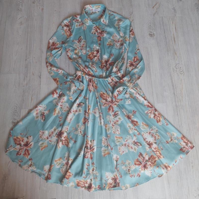 женское платье красивое миди длина голубого цвета в цветы. размер м. шелк 70%. 500грн