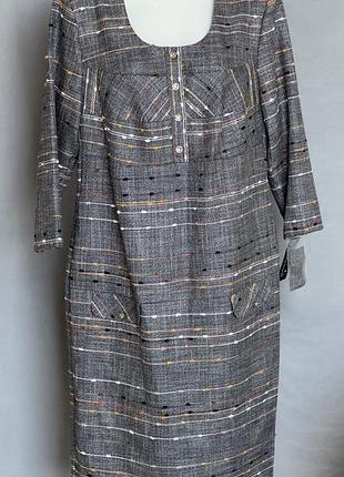 Сукня нова, є бирка. Тканина щільна, не просвічує. На більш прохолодну погоду, не на спеку. Склад: Поліестер - 60%, Віскоза - 40%. Розмір - 48. Заміри: Довжина: 100 см Обхват грудей: 96 см Обхват стегон: 104 см