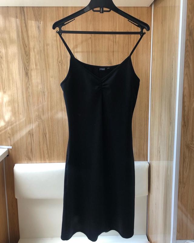 🤍 чорна легка силуетна сукня міді на тонких бретелях 🏷ціна: 350 грн 🔖 розмір: s-m 🔗 заміри: довжина з бретелями 92 см мій зріст 158 см параметри: 84/69/88