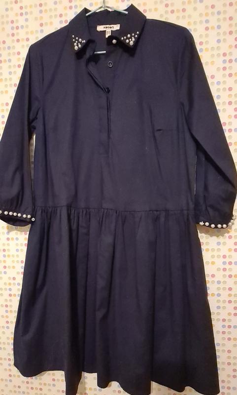 Темно- синє плаття, виробник Туреччина, Koton, у розмірі с-м, по коліна. Прикрашене бусинами: комір, рукави. Нат.тканина👍💯Під кроси-👍, під босоніжки чи туфлі- добре однаково!!!