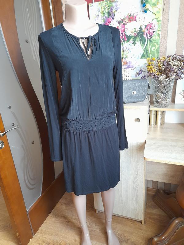 оригінальна чорна сукня із зав'язкою, дуже добре тягнеться, розміру не знайшла, але орієнтуйтеся по замірах довжина 97 см, ОГ 46 см, ВІД 41 см + гумка