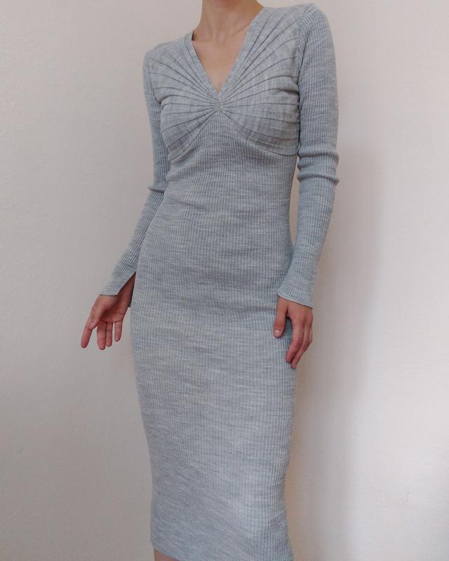Сіра сукня в рубчик плаття міді в рубчик asos сукня з довгими рукавами плаття осінь плаття...