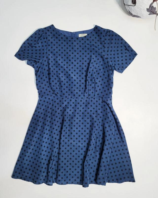 ❤плаття сине в горох, приталено, є підкладка, на спині застібка ☑ розмір- 16 Пог 52,5, пот 44, пос 54, довжина 91 ☑ Бренд- papaya ☑ стан- ідеальний Фото на тілі не роблю!