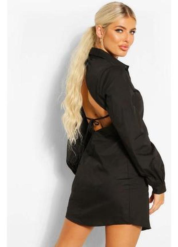 Сукня-сорочка з відкритою спиною від Boohoo. Застібається на гудзики. Склад: 100% котон. Розмір вказано L але більше підходить для М/S. Довжина 84 см, з боків трохи коротше 80 см. ПОГ 46 см. ПОТ 40 см. ПОБ 46 см. Плечі 38 см. Довжина рукава 62 див. Обміну та повернення немає. Відправка Новою поштою та Укрпоштою після повної оплати.