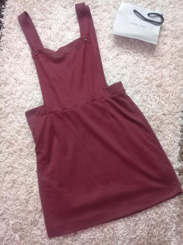 Супер модный сарафан, цвет марсала, состояние отличное. Размер 38, длинна сарафан с брительками 85. Застегивается сбоку, мамочек не видно)
